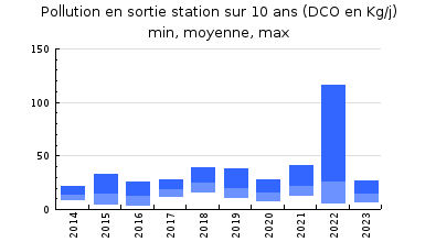 | DBO5 | 173 Kg/j | 41 % | 167 mg/l | 98 % | 2,8 Kg/j | 2,8 mg/l |
