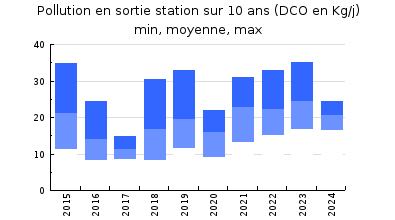 | Système de collecte : Le système dassainissement d'Assat/Bordes dessert les communes de Boeil-Bezing, Angaïs, Bordes et une partie d'Assat, grâce à une cinquantaine de kilomètres de canalisation majoritairement gravitaires et de type séparatif. Il comporte 7 postes de refoulement et 2 ouvrages de déverses. Récent, il a été construit par tranches depuis 10 ans. Il dessert 2 037 abonnés parmi lesquels figurent le pôle aéronautique et les rejets domestiques de lusine SAFRAN qui constituent une part importante du flux global. Les extensions de collecte se poursuivent pour desservir de nouveaux quartiers. En 2020, le bureau détudes HEA a réalisé deux campagnes de mesures dans le cadre du SDA. Des eaux claires parasites permanentes (ECPP) avaient été localisées dans le quartier Clément Ader et Turbomeca. Suite à cette étude, les priorités figurant au programme de travaux à mener par la Communauté de communes du pays de Nay étaient de réduire les ECPM et ECPP. En 2024, le suivi départemental a été réalisé par le biais dun bilan 24h le 2 mai par temps humide et 17mm de précipitations le jour précédent. Les données dautosurveillance 2024 de lexploitant, montrent clairement un impact de la pluviométrie sur les débits entrants et traités sur la station dAssat qui génère des pics ponctuels avec un ressuyage faible en période de nappe basse et très important en période de nappe haute. En 2024, la station a traité environ 362 660 m3 (309 300 3 en 2023). Le trop plein du bassin dorage a été inactif en 2024 comme chaque année depuis 2018. Le débit moyen journalier entrant dans la station, toutes météo confondue, est de 991 m3/j, compatible avec la capacité nominale de cet équipement (2335m3/j). Au cours de lannée 2024, lors de périodes pluvieuses, le débit entrant a varié entre 1150 et 2335 m3/j à 85 reprises. Le débit a dépassé la capacité nominale hydraulique (2335 m3/j) seulement à 5 reprises au cours de lannée. En période nappe basse et par temps sec, le débit moyen a été évalué à 927 m3/j. Lors dépisodes pluvieux, les débits augmentent et le débit moyen de temps de pluie a été estimé à 1105 m3/j. En période de nappe haute, après la pluie, les débits collectés diminuent très lentement sans jamais revenir au niveau de temps sec nappe basse. Le réseau est fortement soumis aux entrées deaux claires parasites permanentes en provenance de la nappe. A partir des mesures autosurveillance de 2024, on constate que les concentrations de leffluent brut sont caractéristiques des eaux usées domestiques plus ou moins concentrées en fonction de la pluviométrie et de la nappe. La DCO varie de 128 à 1120 mg/l et la DBO5 varie de 150 à 460 mg/l. En période estivale de mai à fin août, les flux de pollution organiques parvenant jusquà la station varient de 4 430 EH à 7 037 EH organiques (le 26/06/2024, DCO = 936 mg/l). En période hivernale, les flux de pollution varient de 3 480 EH à 8 400 EH lors de la mesure du 30 octobre 2024 avec un volume entrant de 1544 m3/j. Remarque : les flux sont calculés sur la DBO5 pondérée par la DCO). La moyenne de la charge entrante des 24 mesures réalisées en 2024 est de 5 614 EH soit 37% de la capacité nominale organique de la station. La station d'épuration collecte la totalité des volumes transitant dans le réseau, aucun déversement vers le milieu naturel au cours de lannée 2024. Lors du bilan NAIADE de mai 2024, les postes de relevage présents sur le réseau ont bien fonctionné durant la mesure. Ces ouvrages font lobjet dun passage régulier. Un hydrocurage est réalisé à fréquence biannuelle. Avec 758 m3/j, le débit collecté représente environ 5052 équivalents habitants hydrauliques (à raison de 1 EH = 150 l/j). La concentration de leffluent brut est caractéristique deaux usées domestiques diluées(DCO : 574 mg/l). Avec 167 kg DBO5/j et 435 kg DCO/j, la charge à traiter représente 3202 EH organiques (sur la base de 1 EH= 60 g DBO5/j et 1 EH = 120 g DCO/j). |