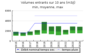 | Débit nominal temps pluie : | 5 002 m3/j |
