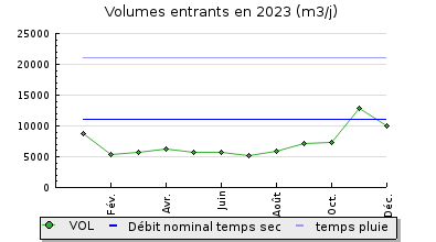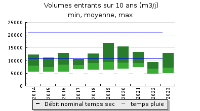 | Débit nominal temps pluie : | 21 000 m3/j |