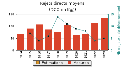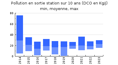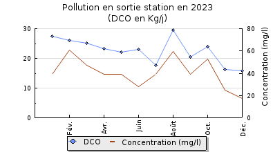 | DBO5 | 106 Kg/j | 43 % | 205 mg/l | 97 % | 3,0 Kg/j | 5,2 mg/l |