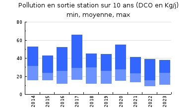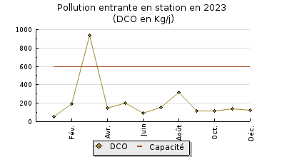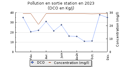 | DBO5 | 92 Kg/j | 31 % | 126 mg/l | 97 % | 2,5 Kg/j | 3,0 mg/l |
