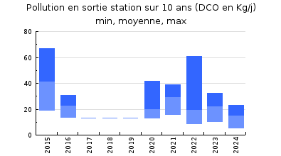 | DBO5 | 69 Kg/j | 48 % | 246 mg/l | 97 % | 1,9 Kg/j | 6,8 mg/l |