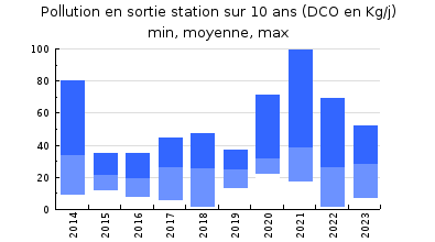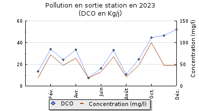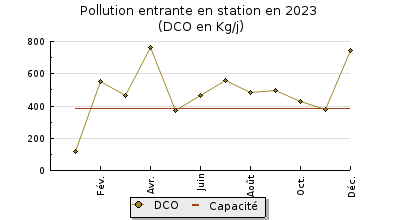 | DBO5 | 194 Kg/j | 54 % | 411 mg/l | 99 % | 1,1 Kg/j | 1,8 mg/l |