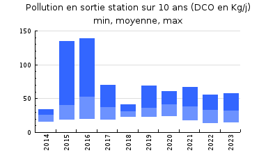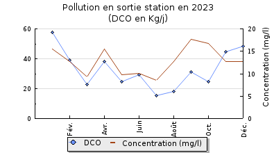 | DBO5 | 130 Kg/j | 22 % | 58 mg/l | 96 % | 4,8 Kg/j | 1,8 mg/l |