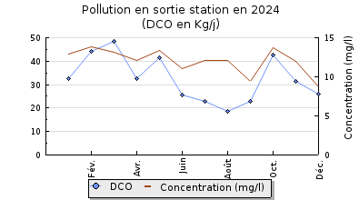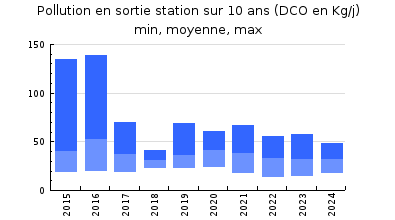 | DBO5 | 127 Kg/j | 21 % | 53 mg/l | 96 % | 5,2 Kg/j | 2,0 mg/l |