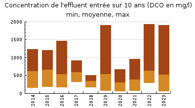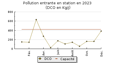 | DBO5 | 54 Kg/j | 24 % | 139 mg/l | 98 % | 1,0 Kg/j | 2,7 mg/l |