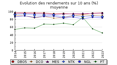 | DBO5 | 4 125 Kg/j | 40 % | 76 mg/l | 97 % | 139 Kg/j | 2,2 mg/l |
