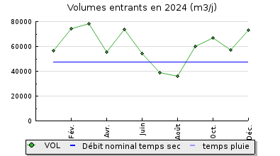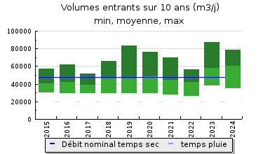 | Débit nominal temps sec : | 47 620 m3/j |