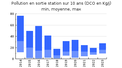 | DBO5 | 129 Kg/j | 38 % | 116 mg/l | 98 % | 2,5 Kg/j | 1,8 mg/l |