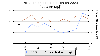 | DBO5 | 129 Kg/j | 38 % | 116 mg/l | 98 % | 2,5 Kg/j | 1,8 mg/l |