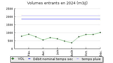 | Débit nominal temps pluie : | 2 070 m3/j |