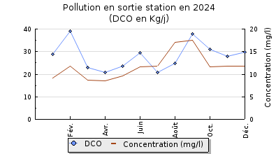 | DBO5 | 160 Kg/j | 27 % | 80 mg/l | 98 % | 3,4 Kg/j | 1,3 mg/l |