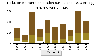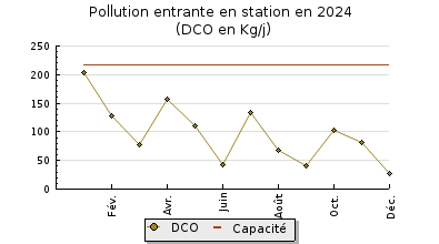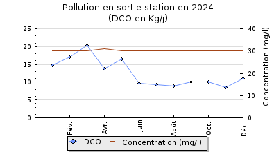 | DBO5 | 41 Kg/j | 38 % | 126 mg/l | 97 % | 1,2 Kg/j | 3,0 mg/l |