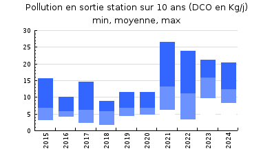| Système de collecte : En 2024, le suivi départemental dans le cadre du programme NAIADE a été réalisé par 1 bilan 24 h le 25 septembre et 1 visite avec analyses le 2 avril. Description : Selon le SDA, pour la totalité de la commune qui comporte 2 systèmes dassainissement (SA). Le réseau dassainissement, dune longueur de 16 km environ est séparatif et essentiellement gravitaire (730 m de canalisations de refoulement). Le réseau de collecte compte 3 postes de refoulement (PR) sur le SA dOgeu bourg (Stade, Camous, Genêts) et un poste de mise en charge (PMC) sur le SA dOgeu Semo. On recense 4 points de déverse ? - trop-plein du PMC (SEMO) ? - trop-plein du PR du stade (Bourg) ? - trop-plein/by-pass en entrée des 2 STEP Le nombre dabonnés pour le SA dOgeu bourg est de 354 ». Fonctionnement : Deux antennes parviennent à la station dépuration SEMO: - Lélectrovanne du PMC, qui collecte le flux de la zone artisanale et des lotissements, est ouverte en permanence depuis plusieurs années. Le réseau collecte à la fois des eaux claires parasites permanentes (ECPP) et des eaux pluviales. Pour notre bilan 2024, par temps humide (3 mm), on mesure 67m3/j. En période nocturne, le débit est 1,7 m3/h indiquant que le réseau collecte alors des eaux claires. Des mesures antérieures indiquent que le débit par temps sec est de lordre de 40-45 m3/j. La moyenne du débitmètre entrée domestique entre avril et septembre 2024, établi sur la base des index relevés, est de 113 m3/j - les rejets de lusine SEMO se font par bâchées, généralement de 10h à 18h et fluctuent selon la météo et la production de lusine de 10 à plus de 300 m3/j (forte influence de la pluie). Pour le bilan de septembre 2024, les rejets ont lieu la nuit et en matinée, le volume est proche 115 m3/j avec un débit continu sur la période de rejet de lordre de 8 m3/h (moindre entre 12h et 14h).La moyenne du débitmètre SEMO (installé en mars 2024) sur la période avril-septembre 2024 est de 166 m3/j. Le volume global à traiter pour notre bilan de septembre est de 181 m3/j. Depuis 2022, lexploitant transmet des données journalières concernant le débit « entrée globale » et le débit sortie. Elles ont été associées à la pluviométrie de la station dépuration dOloron-Sainte-Marie pour lanalyse suivante : - le débit traité est en moyenne annuelle de 343 m3/j (274 m3/j en 2023), variant entre 0 m3/j à 1076 m3/j (70 à 535 m3/j en 2023). Le débit moyen de temps sec est de 272 m3/j. La capacité de la station (260 m3/j) est dépassée pour 3/4 du temps. - Le volumes journaliers de lentrée domestique et de lentrée SEMO ne sont pas fournis par lexploitant. Flux polluant : Pour le bilan 2024, leffluent brut est peu dilué et la charge polluante globale estimée à 1030EH, selon la répartition suivante : - SEMO 887 EH, Les valeurs mensuelles de lautosurveillance 2024 de lexploitant fluctuent dans des proportions qui ne paraissent pas réalistes (de 67 EH en décembre à 1175 EH en avril). - Domestique : 140 EH, cest peu au regard de mesures antérieures (300-400 EH). Selon les mesures de lexploitant, le flux varie entre 60 et 1000 EH avec une moyenne à 360 EH. La moyenne de temps sec est de 150 EH. Il y a suspicion de dépôts dans le poste de mise en charge et sur le transit en raison du faible autocurage en labsence de chasses. Comme pour les deux années précédentes, les mesures réalisées en 2024 par lexploitant sont difficilement interprétables et les charges mesurées sont particulièrement variables. Les 3 plus fortes charges sont mesurées par temps de pluie. Etudes et travaux : Le schéma directeur dassainissement a été actualisé en 2019-2020 par HEA. Les investigations menées dans ce cadre ont permis de localiser les zones dintroduction des eaux claires parasites et pluviales (concernent majoritairement le domaine privé). Les travaux en domaine public concernent la réfection de létanchéité de regards et autres interventions mineures. |