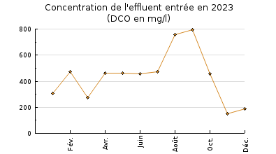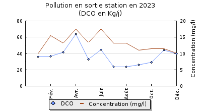 | DBO5 | 463 Kg/j | 54 % | 219 mg/l | 97 % | 16 Kg/j | 5,7 mg/l |