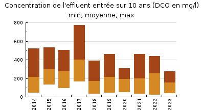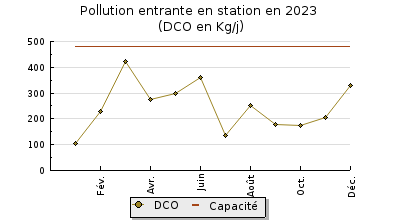 | DBO5 | 85 Kg/j | 28 % | 58 mg/l | 94 % | 5,1 Kg/j | 2,8 mg/l |