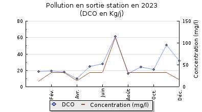 | DBO5 | 162 Kg/j | 45 % | 245 mg/l | 96 % | 5,9 Kg/j | 7,6 mg/l |