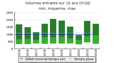 | Débit nominal temps pluie : | 1 100 m3/j |