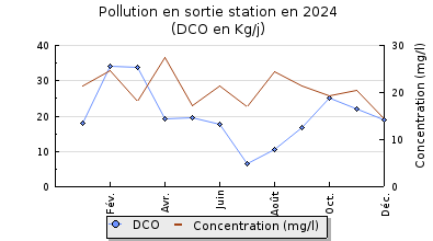 | DBO5 | 179 Kg/j | 50 % | 216 mg/l | 98 % | 3,0 Kg/j | 2,8 mg/l |