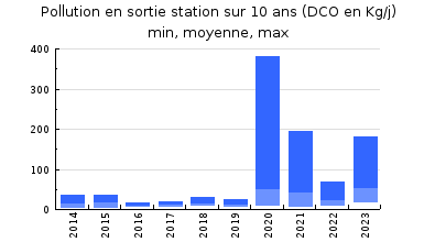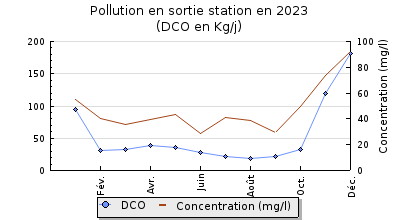 | DBO5 | 133 Kg/j | 52 % | 172 mg/l | 90 % | 14 Kg/j | 10 mg/l |