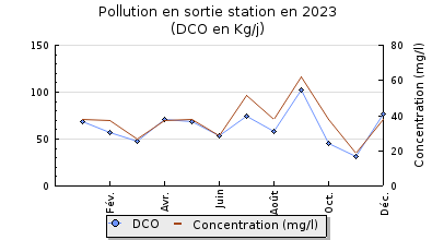 | DBO5 | 376 Kg/j | 75 % | 233 mg/l | 97 % | 9,8 Kg/j | 6,1 mg/l |