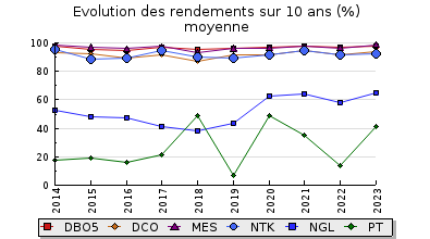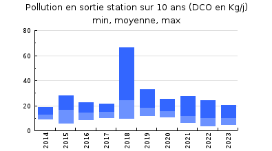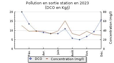 | DBO5 | 59 Kg/j | 45 % | 249 mg/l | 98 % | 1,4 Kg/j | 4,8 mg/l |