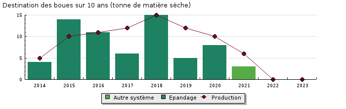 | Sous produits : Les boues sont extraites pour être déshydratées sur une table d'égouttage, environ 2 fois/mois. La table d'égouttage fonctionne 3 à 4h à chaque extraction. Elles sont ensuite stockées dans le silo à boues. Avec la crise sanitaire, les boues étaient envoyées vers la step de Lannemezan. L'interdiction d'épandre des boues brutes étant levée, la commune a la possibilité de relancer les épandages. |