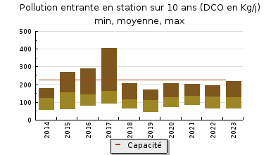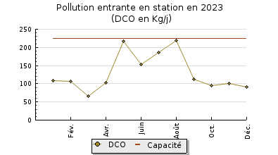 | DBO5 | 49 Kg/j | 32 % | 266 mg/l | 99 % | 0,5 Kg/j | 2,9 mg/l |