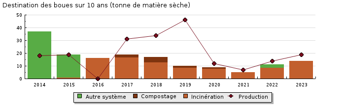 | Sous produits : Les boues sont pressées (presse à vis) puis mises en benne. Elles sont dorénavant envoyées en compostage à la SEDE à Borderes sur Echez. Plein hiver : 1 benne/sem Hors saison : 1 benne / 2-3 mois. Les graisses sont récupérées la SARP et sont envoyées à Ecopur ou à la station de Bagnères. Plein hiver : 3-4 fois/semaine Hors saison : 1 fois/semaine. |