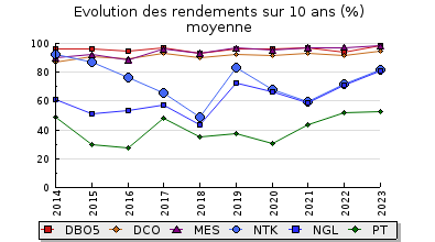 | DBO5 | 220 Kg/j | 24 % | 172 mg/l | 98 % | 3,9 Kg/j | 3,0 mg/l |