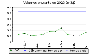 | Débit nominal temps sec : | 910 m3/j |