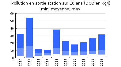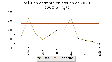 | DBO5 | 58 Kg/j | 19 % | 198 mg/l | 98 % | 1,1 Kg/j | 3,2 mg/l |