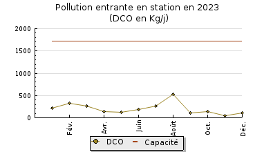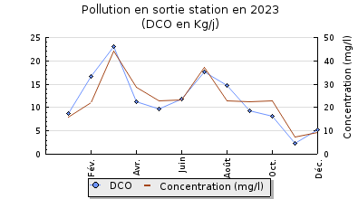 | DBO5 | 126 Kg/j | 15 % | 228 mg/l | 99 % | 1,9 Kg/j | 3,6 mg/l |