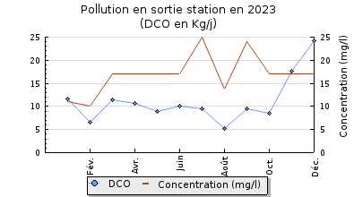 | DBO5 | 135 Kg/j | 31 % | 236 mg/l | 98 % | 2,1 Kg/j | 3,1 mg/l |