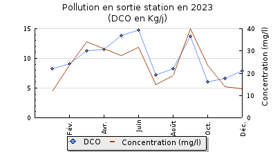 | DBO5 | 66 Kg/j | 44 % | 151 mg/l | 98 % | 1,4 Kg/j | 3,1 mg/l |