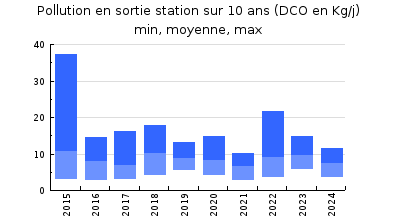 | DBO5 | 66 Kg/j | 44 % | 145 mg/l | 98 % | 1,5 Kg/j | 2,9 mg/l |