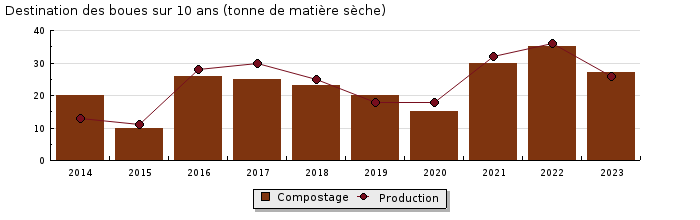 | Sous produits : Les boues sont deshydratées sur une presse à bande avec ajout de polymère puis stockées en benne. Les boues sont évacuées par l'entreprise Frechou dans une plateforme de compostage (environ 4 bennes par mois, entre 20 et 25 tonnes humides). Les graisses sont extraites 4 fois par an et envoyées vers la station de Bagneres. |