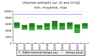 | Débit nominal temps sec : | 9 025 m3/j |