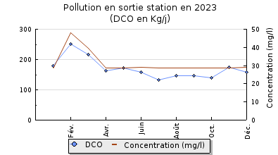 | DBO5 | 1 427 Kg/j | 48 % | 272 mg/l | 98 % | 22 Kg/j | 4,0 mg/l |