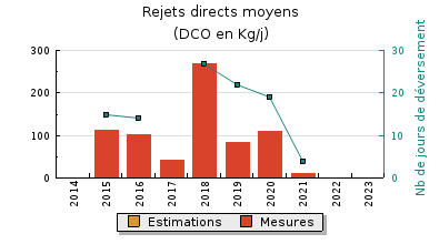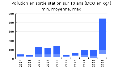 | DBO5 | 257 Kg/j | 57 % | 257 mg/l | 95 % | 14 Kg/j | 17 mg/l |