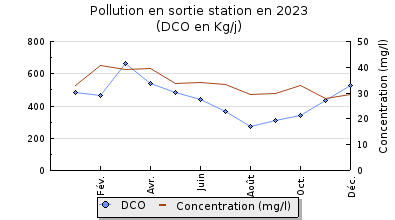 | DBO5 | 3 269 Kg/j | 60 % | 251 mg/l | 99 % | 26 Kg/j | 2,0 mg/l |