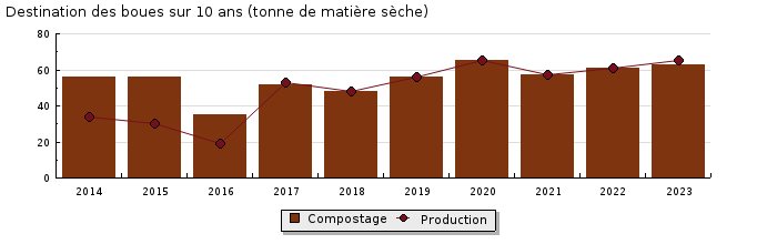 | Sous produits : Les boues sont extraites de la file eau puis déshydratées par centrifugation avant stockage en benne et évacuation vers une plateforme de compostage. Depuis 2022 elles sont réceptionnées sur la station de Pont de l'Arn/Mazamet à raison d'une benne de 7 à 8 tonnes toutes les 2 semaines. |