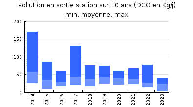 | DBO5 | 149 Kg/j | 27 % | 177 mg/l | 98 % | 2,9 Kg/j | 2,7 mg/l |