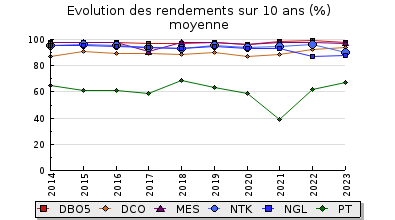 | PT | 5,0 Kg/j | 5,5 mg/l | 67 % | 1,6 Kg/j | 1,5 mg/l | |