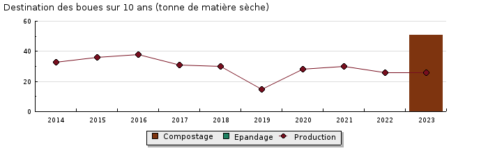| Sous produits : Les boues sont stockées à la surface des casiers des filtres plantés de roseaux. Depuis le curage de 3 casiers en 2019 une surveillance est maintenue en vue de procéder à la gestion des prochains curages de casiers. Ainsi en 2023 2 nouveaux casiers ont été curés et les boues évacuées en plateforme de compostage (station de traitement de Pont de l'Arn / Mazamet). Il est envisagé le curage de 3 nouveaux casiers en 2024. |