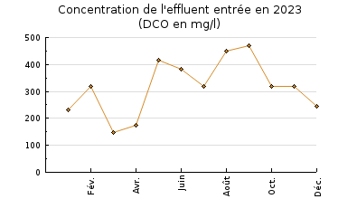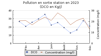 | DBO5 | 105 Kg/j | 35 % | 104 mg/l | 97 % | 2,6 Kg/j | 2,4 mg/l |