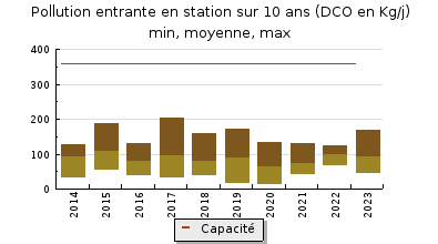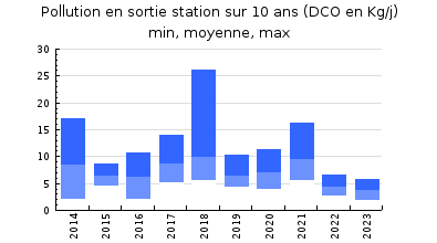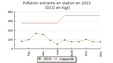| DBO5 | 32 Kg/j | 18 % | 174 mg/l | 98 % | 0,6 Kg/j | 2,8 mg/l |