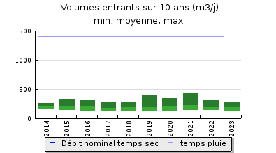| Débit nominal temps pluie : | 1 400 m3/j |