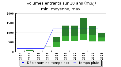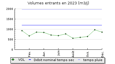 | Débit nominal temps sec : | 1 200 m3/j |